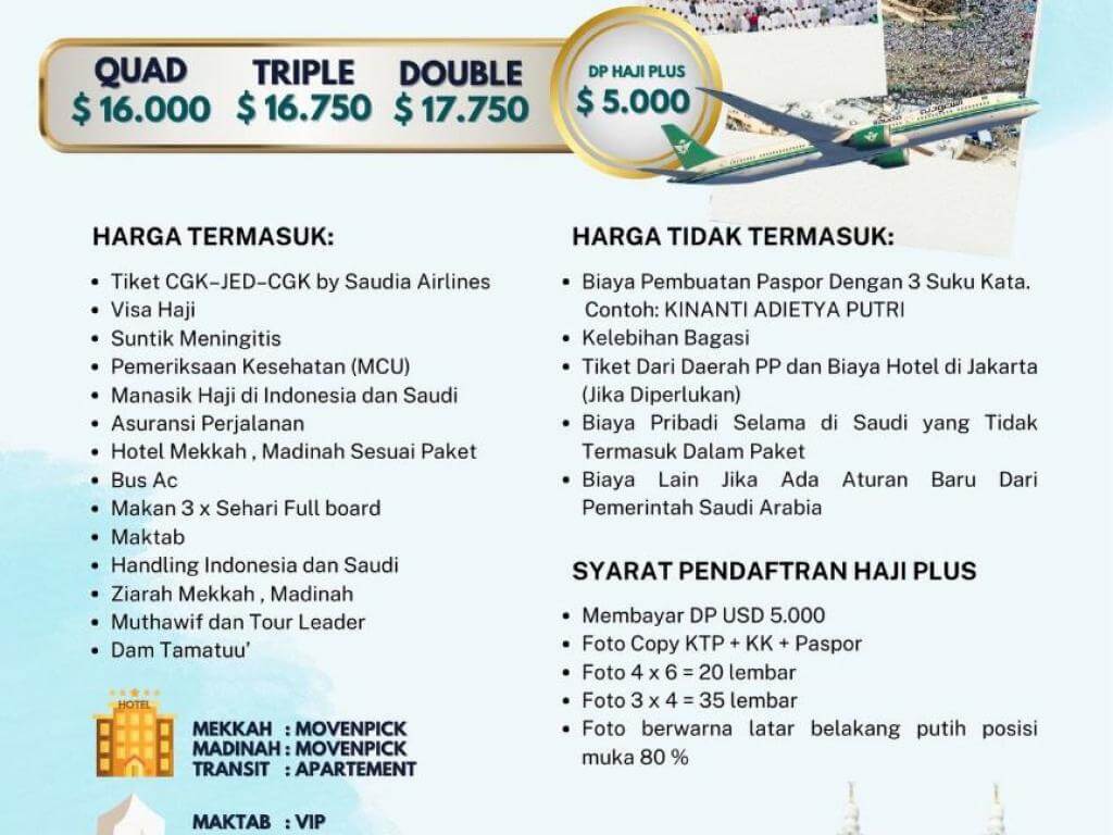 - Biaya pelunasan Haji Plus disesuaikan besarannya sesuai ketentuan yang berlaku di tahun keberangkatan