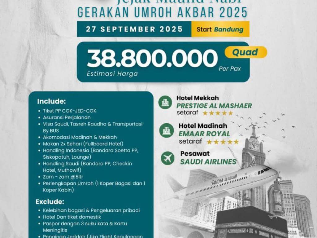 - Harga Visa dan Akomodasi menyesuaikan dengan regulasi KSA